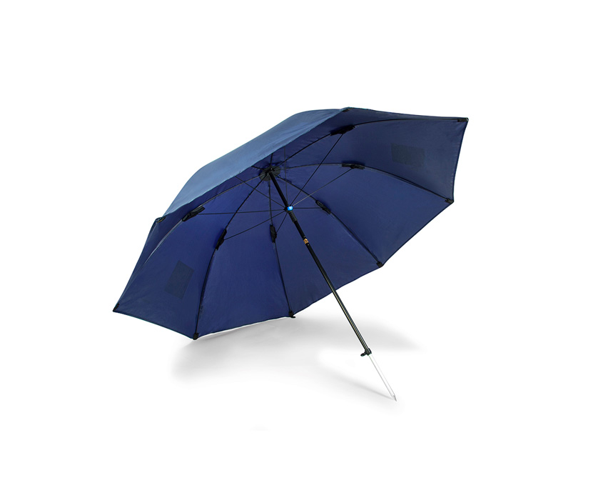 Регулируемый угол наклона обеспечивает еще большую защиту Вас и Вашего оборудования, что делает этот зонт идеальным для ловли в любые погодные условия. Зонт также оснащен двумя отверстиями для фиксации колышками, что дает Вам возможность надежно заякорить зонт к земле при помощи колышек в ветреную погоду (колышки доля зонта входят в стандартную комплектацию).