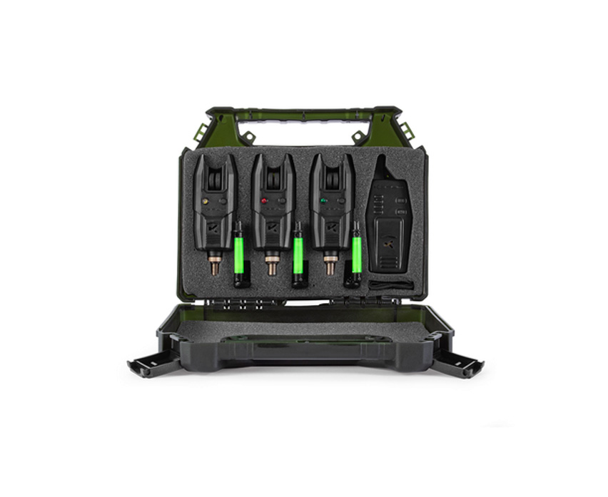 Этот набор сигнализаторов поклевки состоит из трех электронных сигнализаторов поклевки и беспроводного пейджера, а также трех ярко-зеленых механических индикатора поклевки. Сигнализаторы поклевки KBI являются компактными, прочными и надежными. Благодаря чувствительному роликовому колесику и ярким светодиодам эти сигнализаторы отлично подходят для ловли самой разнообразной рыбы. Динамик оснащен регулируемой громкостью, в то время как светодиоды имеют 10-секундный сигнал о поклевке. Пейджер характеризуется большим радиусом приема сигнала, переключателем ВКЛ/ВЫКЛ и регулятором громкости. При использовании пейджера совместно с электронными сигнализаторами поклевки получается высококачественное сочетание, которое не подведет Вас по ходу рыбалки.