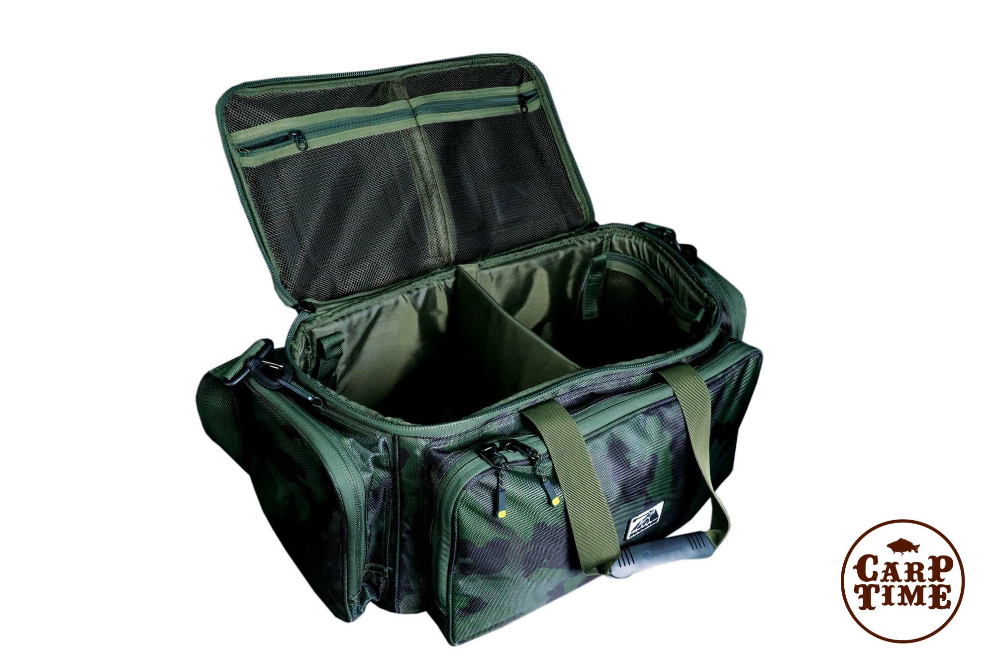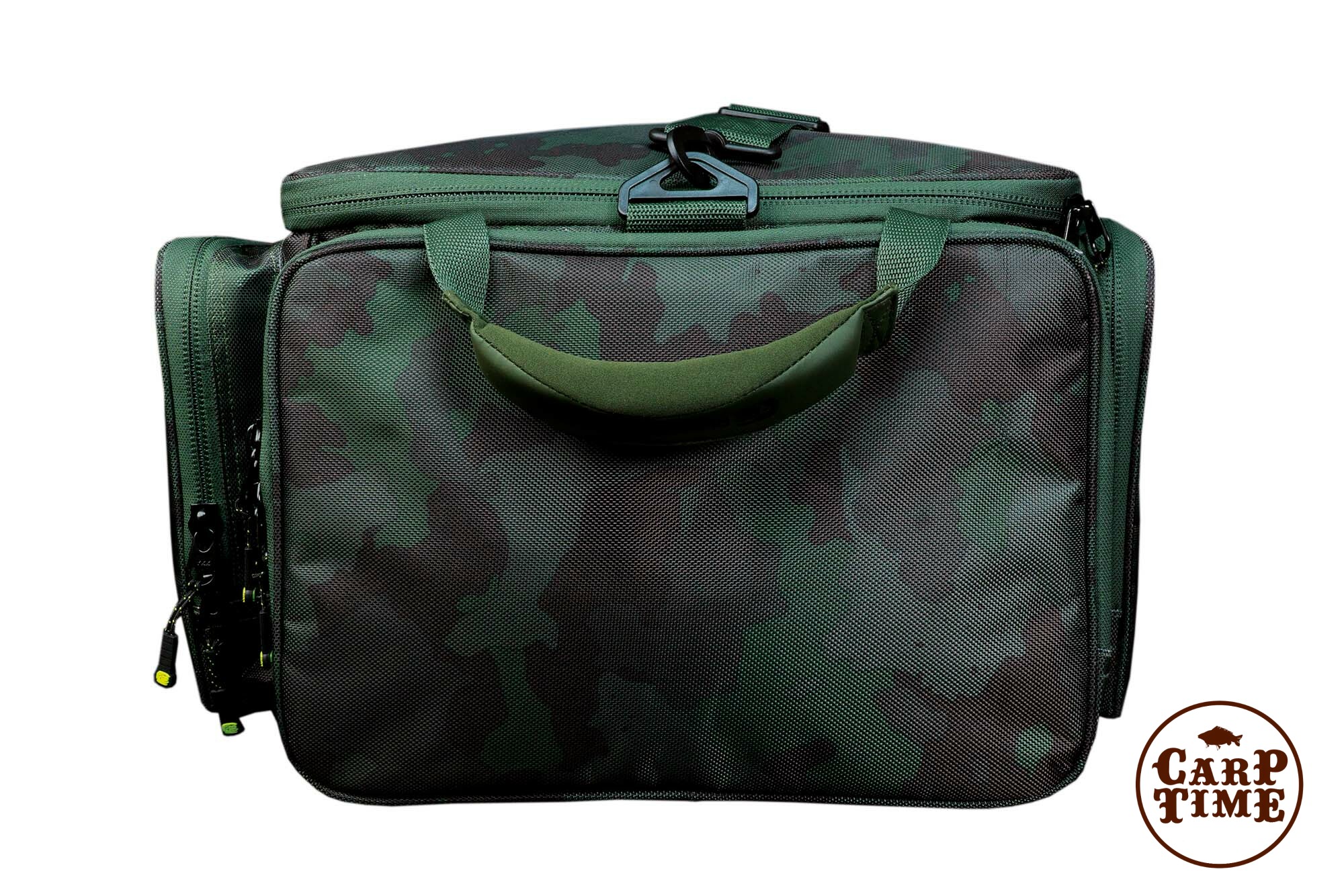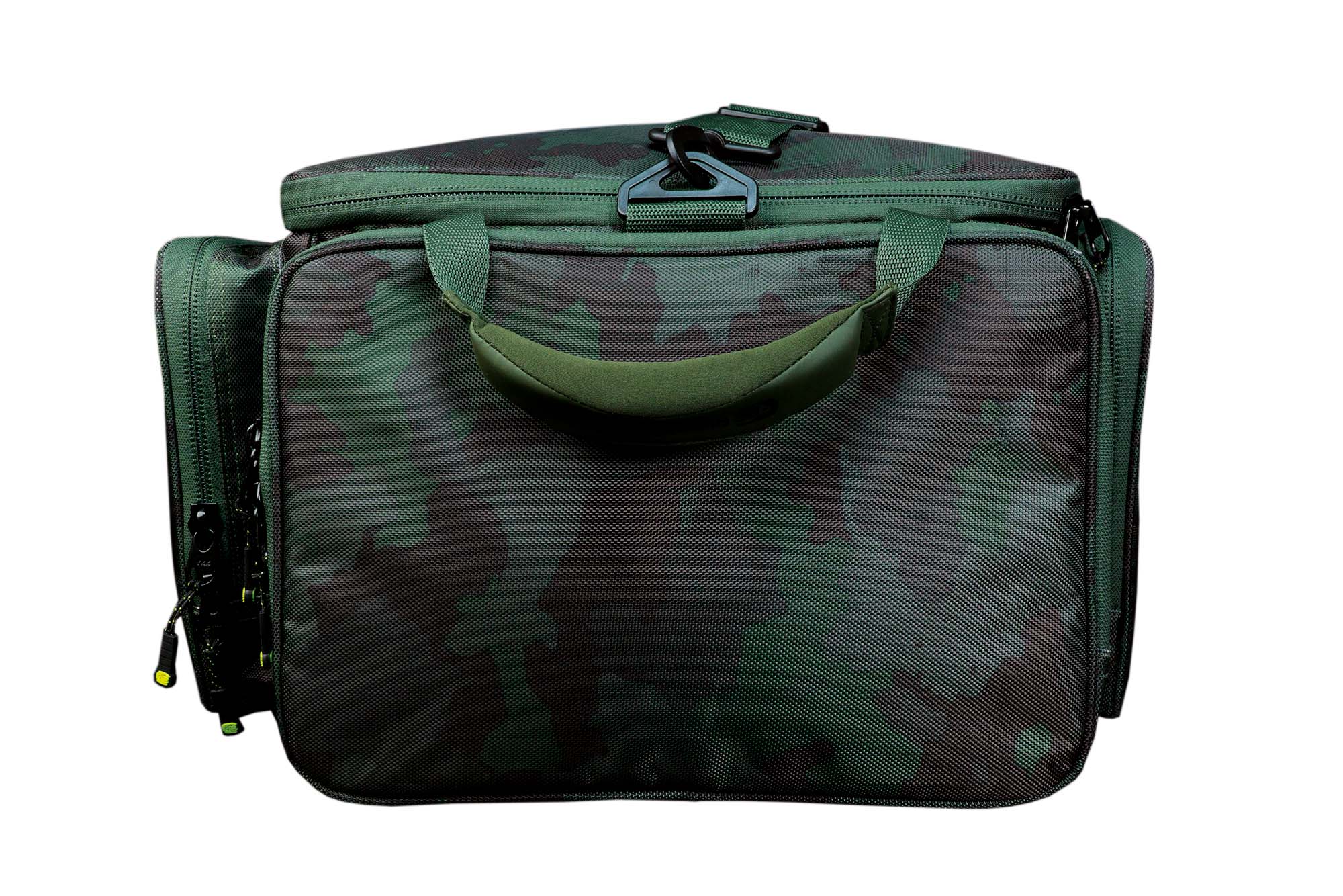 Универсальная сумка имеет удобный съемный наплечный ремень в дополнение к мягким рукояткам для переноски, которые существенно упрощают Вам жизнь при загрузке Вашей машины или тележки всеми необходимыми рыболовными снастями.